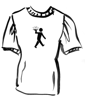 T-Shirt weiss, alle Groessen. Aufbuegler Ø 5 cm. (Leider vergriffen) [Zurueck] [Restaurantkritikkritik]